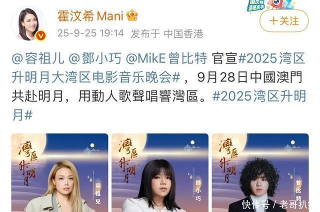 9�日,由电影频道、凤凰卫视等联合主办,将于近期在澳门银河综艺馆举行的《湾区升明月·2025大湾区电影音乐晚会》嘉宾阵容陆续曝光,引发网友高度关注。其中,港澳明星约有十余人,跨老中青三代,国际巨星、实力派歌手、偶像派艺人皆有。       在这些人中,最为内地观众和网友熟悉的一定是成龙,梁咏琪、容祖儿、杨千嬅等著名歌手同样家喻户晓;       演员叶童、综艺人王祖蓝以及歌手王菀之、曾比特、周柏豪、薛凯琪等也在内地颇有名气。       江信熹、龙紫岚、苏耀光、欧阳日华、梁嘉宝、殷巧儿等则名气较小,但也和内地市场有所关联,参加过内地电视节目或区域性音乐节。       至于邓小巧和王丹妮,她们近年来作品多聚焦香港本地,连TVB的综艺节目都较少参与,此次亮相这一高规格文化盛会,引发广泛关注。       此外,此前网上盛传会参加晚会的邓紫棋、古巨基、莫文蔚等人,暂时未见于主要媒体报道的名单中,后续公布的可能性也不高。       值得一提的是,英皇经理人霍汶希也转发了《湾区升明月·2025大湾区电影音乐晚会》的帖文,重点提到了曾比特和邓小巧,可见两人已正式加盟英皇。       毫无疑问,能够加入在港澳与内地均拥有丰富资源的大公司,将为他们的演艺事业打开更广阔的发展空间。但另一方面,商演的频率也可能随之增加,如何在商业曝光与艺术品质间取得平衡,将是他们面临的新挑战。       毕竟,很多中小城市的拼盘演唱会都能见到该公司艺人的身影,连容祖儿都因为要去云浮新兴县某中学的运动场演出,一度被讽刺“从红馆唱到操场”(注:引发关注后新款海报中已不见她的名字)。       当然,《湾区升明月·2025大湾区电影音乐晚会》是一年一度的粤港澳大湾区年度盛事,和那些拼盘演唱会是完全不一样的。它为不同背景、不同路径的港澳艺人提供了一个真正有分量的舞台,也值得每一位参与者认真对待。